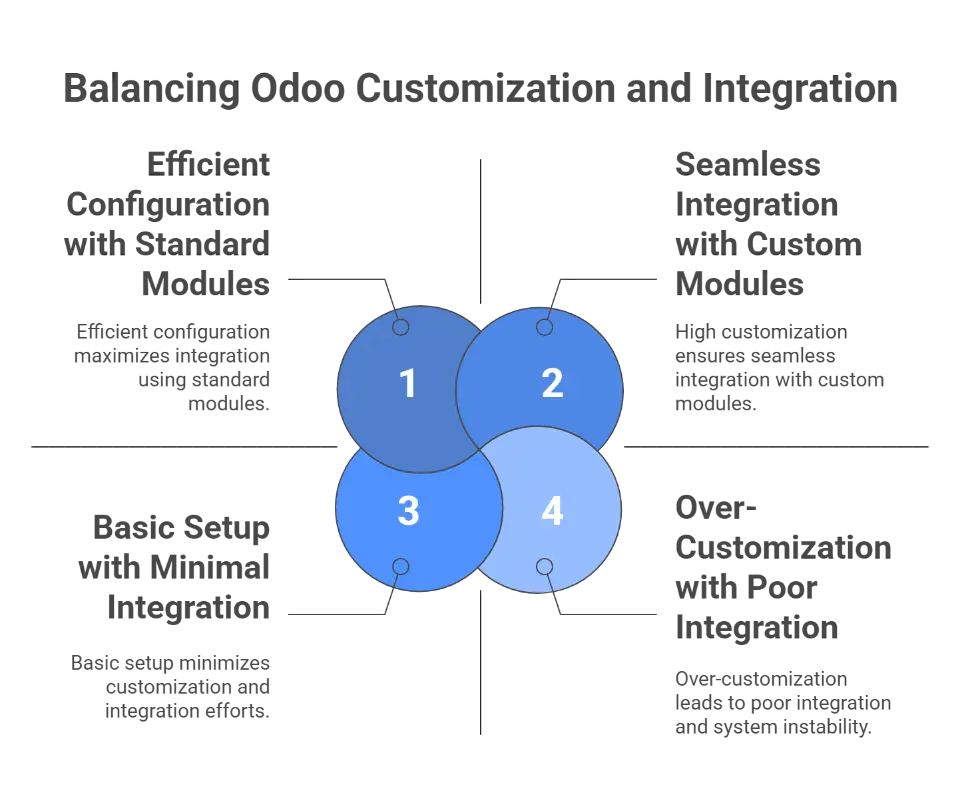 Odoo’s modular architecture empowers businesses with flexibility, but excessive or poorly executed customization can complicate upgrades and impact system performance. Balancing configuration and customization is essential to maintain scalability and long-term stability.