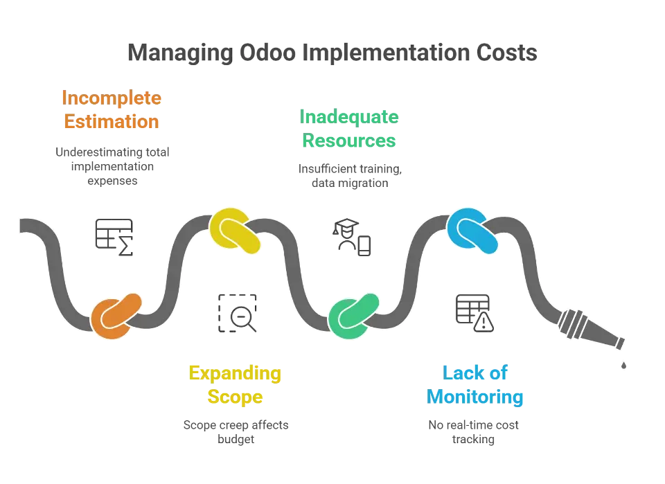 Many businesses underestimate the true Odoo implementation cost. Hidden expenses such as integrations, user training, and post-launch support can quickly drive up the total project budget.