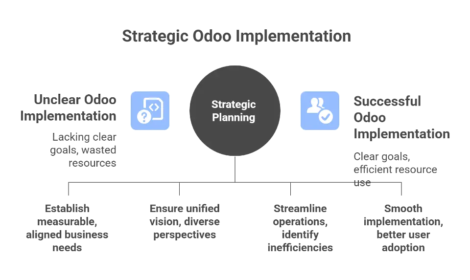 Proper planning is the foundation of any successful Odoo implementation. Without clear goals or alignment with business processes, projects quickly lose focus. A lack of direction during the implementation process leads to wasted resources, unmet expectations, and scope creep.