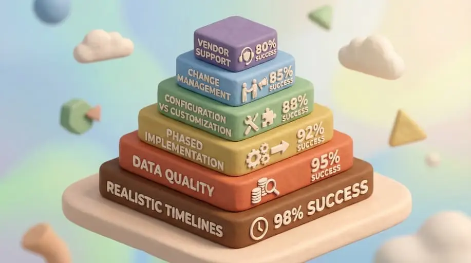 Implementing an ERP system is a big step for any small business. While 88% to 93% of ERP projects go live, only 25% to 45% actually meet their business goals. That gap is usually caused by poor planning, lack of support, or skipping key steps.
