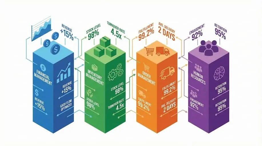 - Inventory Management: Real-time visibility helps reduce inventory variance from 18% to 3%. ERP systems automate reordering, provide traceability of lot and serial numbers, and track inventory across multiple locations.