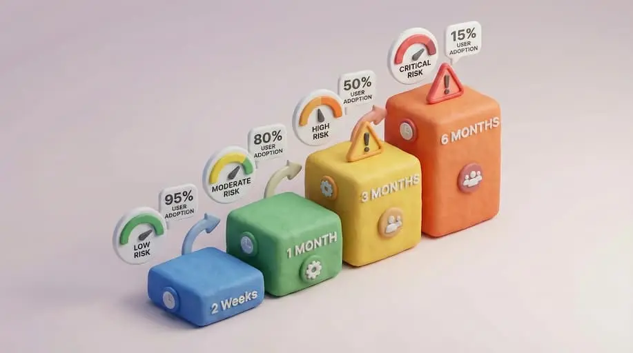 - 60–75% user adoption within 90 days (industry avg: 26%)