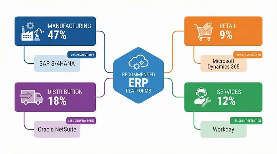Manufacturers need strong production planning, inventory tracking, and supply chain management. Odoo's manufacturing tools offer full support for complex BOMs and workflows at a lower cost. SAP Business One is also a solid choice for growing manufacturers.