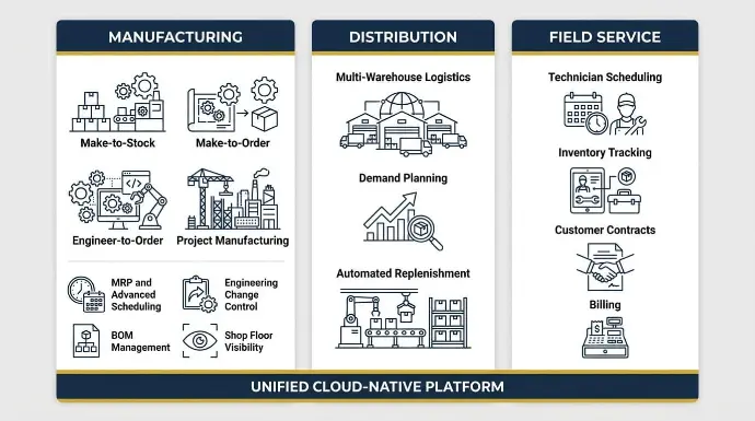 Industries such as manufacturing, distribution, and field service often require deeper operational coordination among inventory management, scheduling, and accounting.