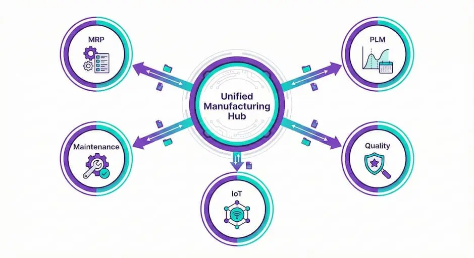 - Unified Manufacturing Hub: Seamlessly connects MRP, PLM, Maintenance, and Quality Control in one interface.