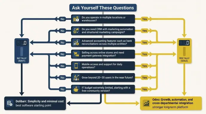 If you are still evaluating Dolibarr vs Odoo, answering a few practical questions can help identify the ideal ERP solution for your organization.