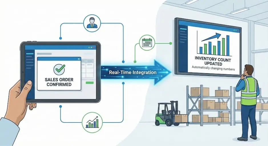 Instead of jumping between tools or manually updating data in two places, everything flows together. Your sales team can see what’s in stock, your finance team gets customer info instantly, and leadership has one clear view of what’s going on.