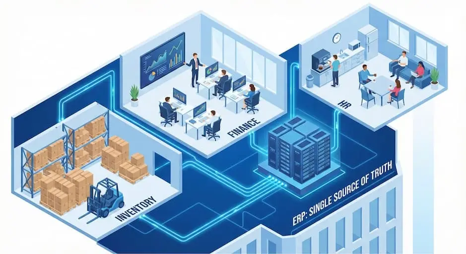 ERP software unifies disjointed internal processes into a single source of truth, covering: