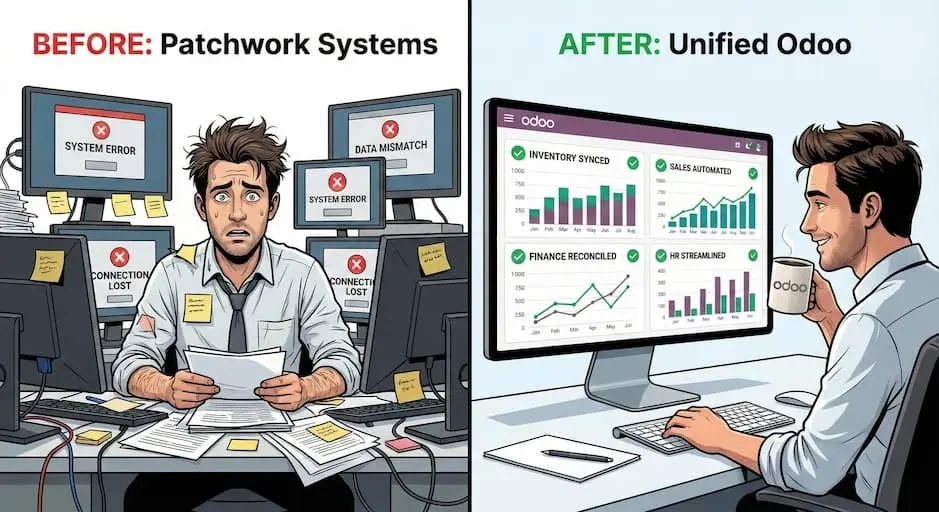 We specialize in Odoo ERP services, helping clients move from disconnected systems to a single platform that supports their entire operation. Our team has real-world leadership experience, with seven consultants who previously served as COOs, General Managers, or Operations Managers. We’ve been in your shoes, and that’s what shapes our approach.