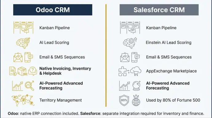 The CRM capabilities comparison between Odoo and Salesforce is often misunderstood. Many people assume salesforce CRM is always more powerful. The truth is more nuanced.