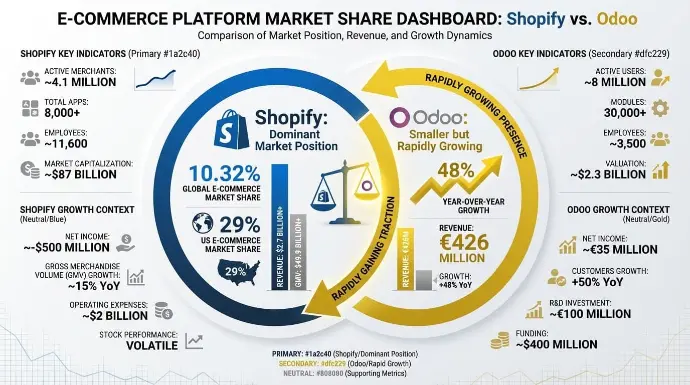 How Do Odoo and Shopify Differ in Market Share and Operational Depth?