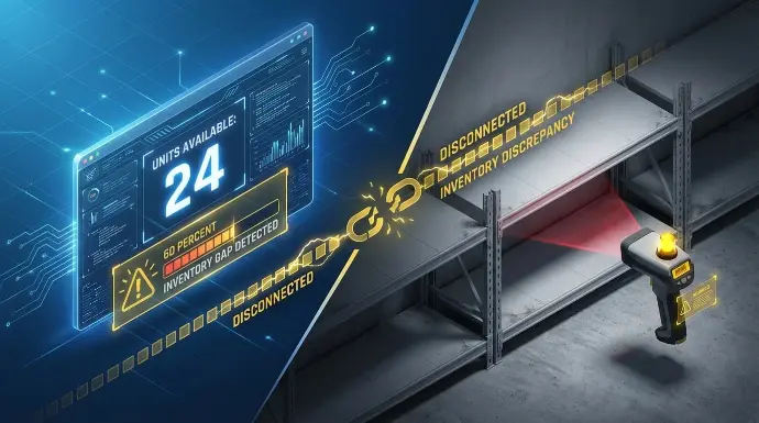 Your system shows inventory levels for Location A, but the product is physically in Location B. The result is identical to a stockout. Pickers cannot find the item. Orders fail. Customers receive cancellation emails.