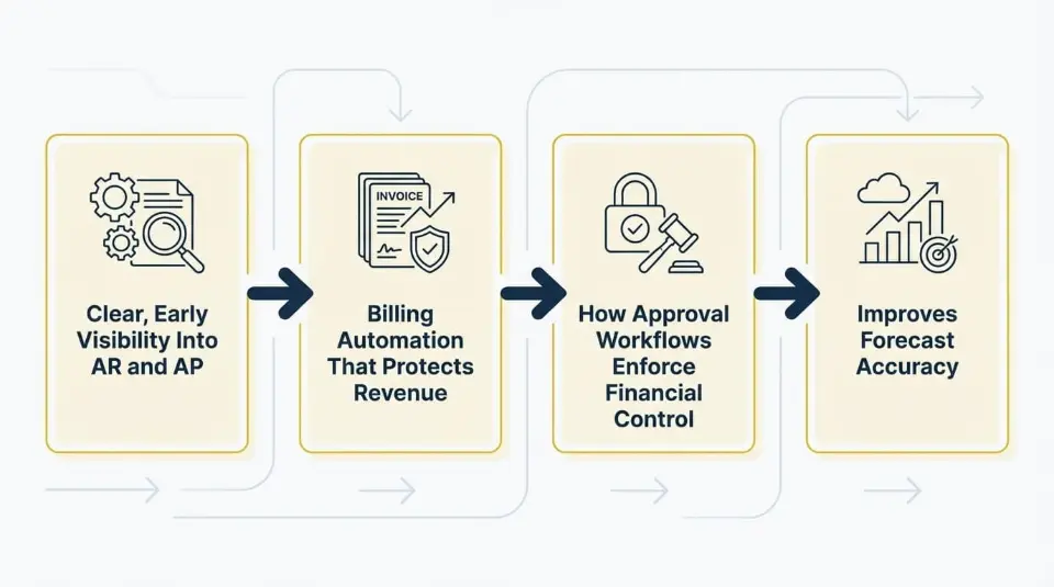 The result is fewer billing delays, fewer disputes, and faster collections. Revenue is recognized when it should be, and cash inflows align more closely with operational reality.